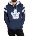 Grab this athletic throwback retro style hoodie to show off your support for the Maple Leafs! The mid-weight fabric and inside brushed fleece give some nice warmth. The team logo is screen printed front and center so everyone will know who you’re cheering for. This striking top features team colored shoulder stripes and bold secondary accents. Take an athletic approach to cheering on your favorite team with this eye-catching hoodie!