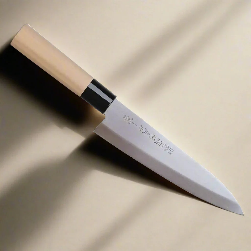 Experience culinary excellence with the Gyuto Knife from Tsubazo, designed to meet the demands of both professional chefs and passionate home cooks. Crafted with precision and care, this Gyuto Knife features a high-quality stainless steel blade that effortlessly glides through meats, fish, and vegetables with unparalleled precision. Its versatile design makes it suitable for a wide range of kitchen tasks, from slicing and dicing to chopping and mincing. The ergonomic wood handle ensures a comfortable grip and superior control, allowing you to tackle any culinary challenge with confidence. Elevate your culinary skills with the Tsubazo Gyuto Knife and unlock a world of possibilities in the kitchen