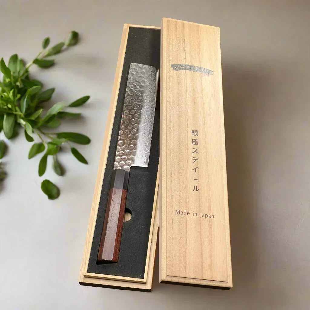 Literally means “vegetable knife” in its original Japanese name, it is specifically for cutting vegetables. It is suitable for chopping and dicing ingredients because there is no tip and the blade is straight. Historically, it has been used on a daily basis by the general population as it was designated as the easy-to-use knife for everyone. The blade has no curvature and the straight blade is easy to sharpen and handle. Unless the person is familiar, it is often hard to cleanly sharpen a knife with curves; however, there is no worry with this type of vegetable knife.